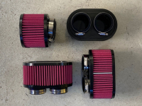 High-flow dual air filter (K&N type) for Amal carburettors, pre-oiled, stainless clamps, washable so lifetime usable.Price: €69