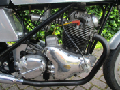 Specifications: Seeley MK3 rolling chassis, Dominator 500cc engine includes dynamic balanced Nourish one-piece crankshaft, Carrillo conrods, heavy-duty racing crankcases, Dunstall pistons/camshaft, flowed SS-cylinder head, Hunt magneto ignition, Newby belt drive, Quaife 5-speed gearbox, many special machined/lightened parts. Koni full adjustable shocks, Smiths Racing tachometer, Tommaselli alloy clip-ons, levers and twistgrip.